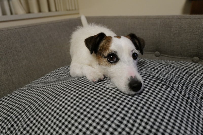 しっぽは、ただ単に、ソファの角に、