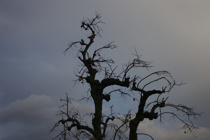 街灯の下で写真を撮る。