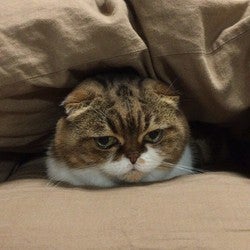 にらんでるみたいだけど、