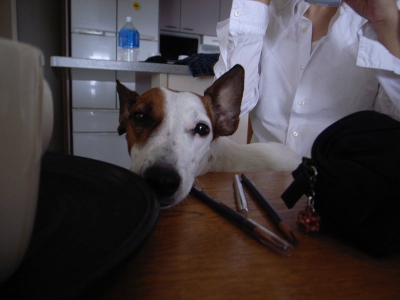 犬は、ひざに乗って出発を待ちます。