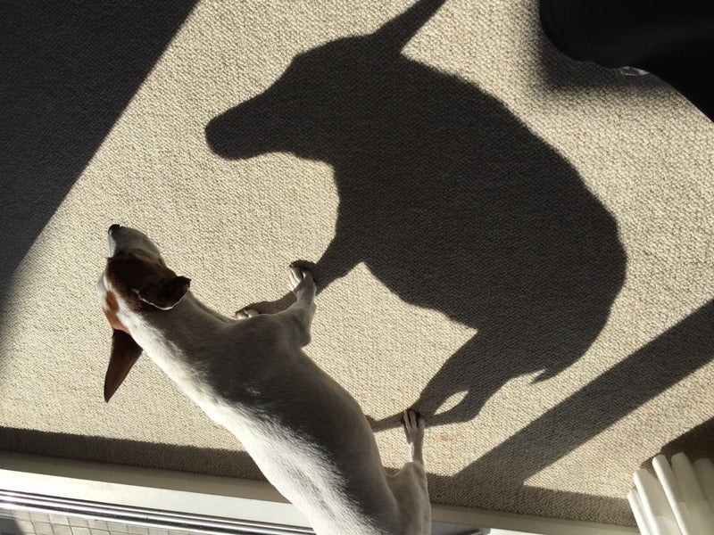 犬よりも影のほうを見てました。