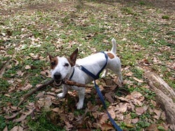 長い枝をくわえて、