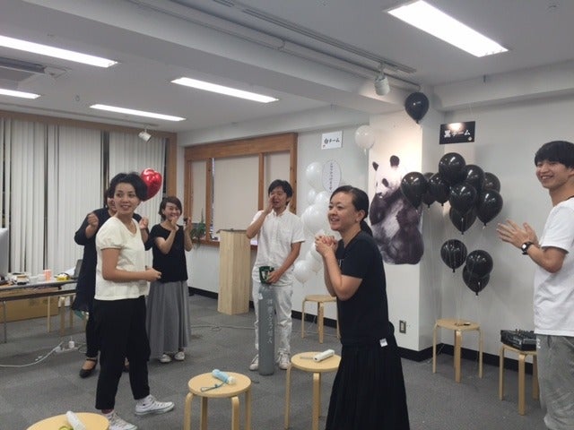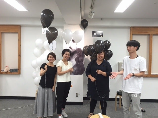 アダルトチームは黒い風船を持ち、