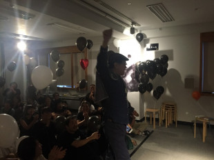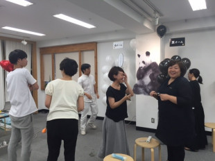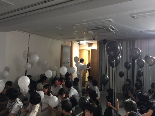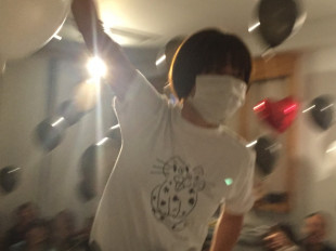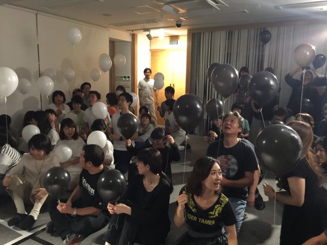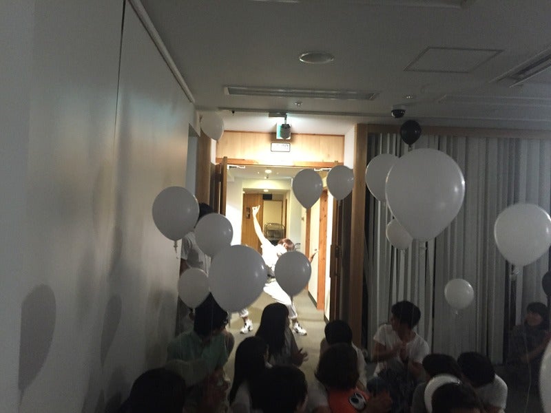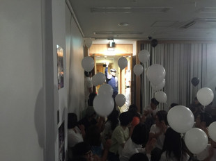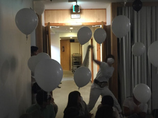 ヤングチームは白い風船を持って