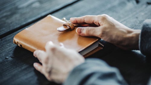 書き込まれる役目を終えた手帳を