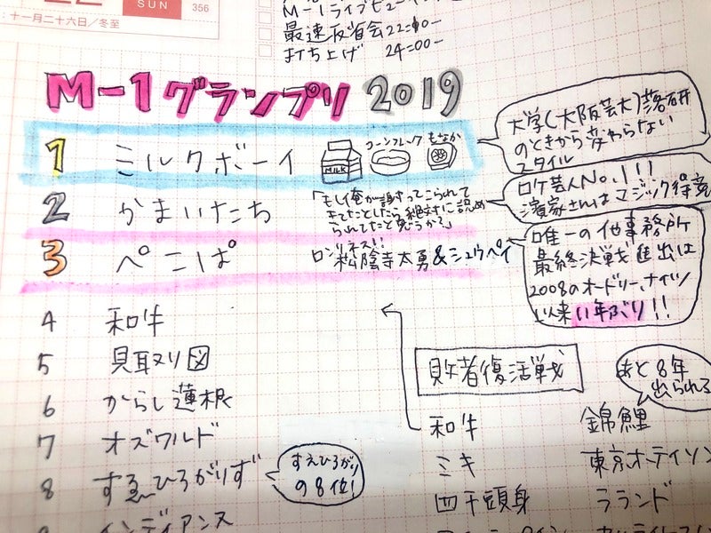 1週間前、M-1グランプリのことを書いた日にも