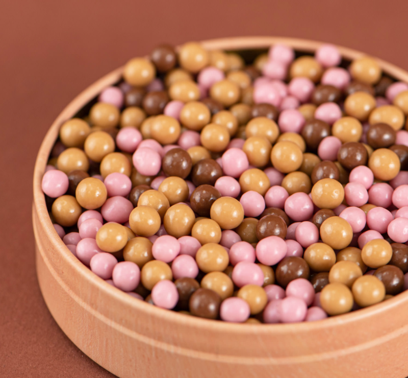 ストロベリーチョコレート、キャラメルチョコレート、ミルクチョコレートの3色の色合いが