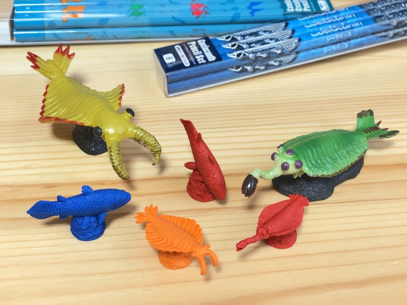 鉛筆には、アノマロカリス、ハルキゲニア、