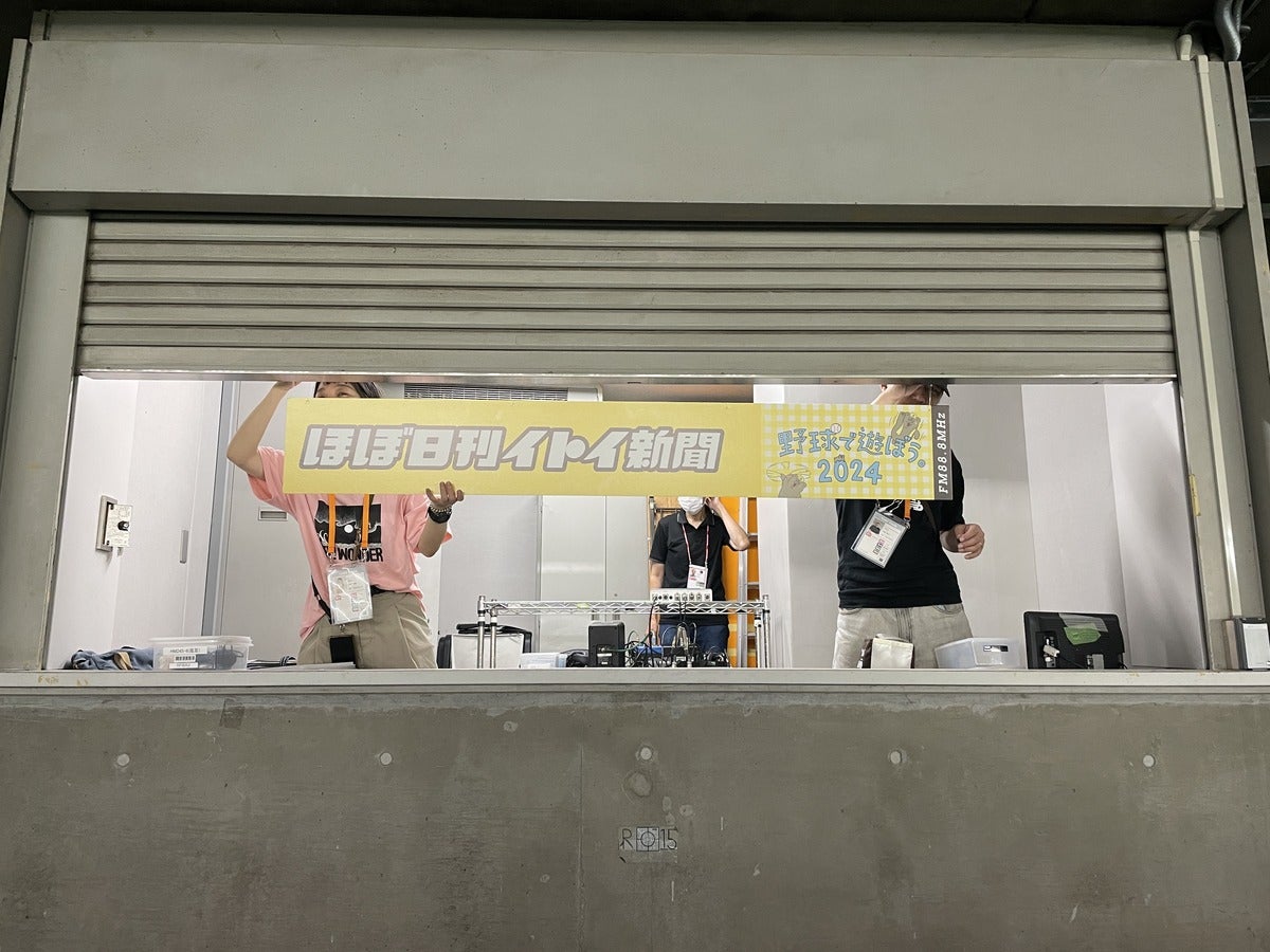 「ほぼ日刊イトイ新聞」の看板を取り付けます。