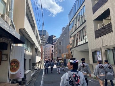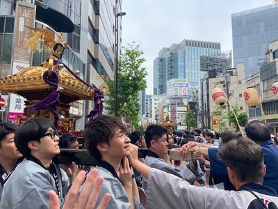 5つの町会の神輿が一斉に交差点に集まって、