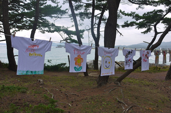 写真2枚目が、Tシャツ海岸の展示風景です。