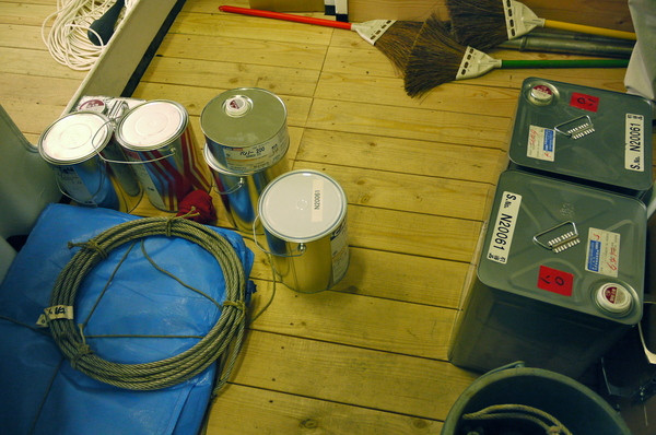 甲板長の倉庫で、船の修理道具や、備品がおさめられて
