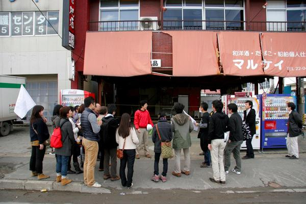 被災した街を案内する、