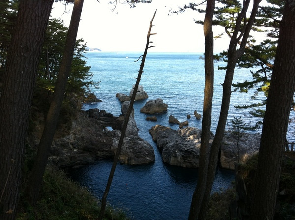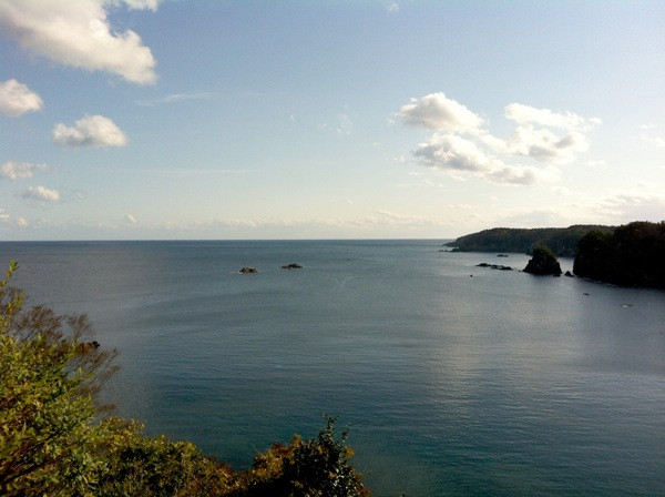 唐桑半島の西側、気仙沼湾の穏やかな海と