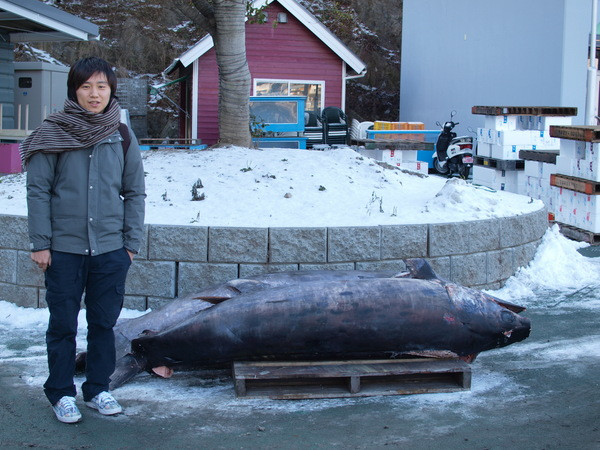 メカジキの大きさがわかるように、