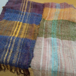 今回は、さをり織り。 講師の先生が、機織り機に セットして下さった縦糸に、 好きな色を好きなように、 組み合わせて織って行きます。