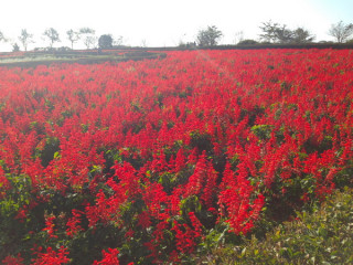秋は、一面真っ赤なサルビア畑も楽しめますよ。