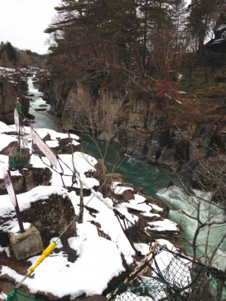 気仙沼のお隣、一ノ関の厳美渓です。雪景色がとってもキレイ!今の時期、ずーっと外にいると寒いので、名物の「いつくし団子」を食べました。一見普通の団子のようですが、「5つ串にささってる」ことで「いつくし」団子なんだそうです。一ノ関の駅やICからもわりと近いので、立ち寄りやすいスポットです。(サユミ)