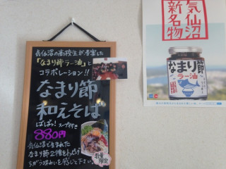 気仙沼の高校生が考案したという「なまり節ラー油」を使ったなまり節和えそばを食べました。なまり節は、昔から伝わる魚を長期保存するための加工食品で、気仙沼ではスーパーでも売られています。和えそばには、なまり節ラー油がたっぷり入って、もちもちした太麺と絡んで、こってりおいしいです。ボリューム満点!ちなみにこちらは、気仙沼田中前の「まるき」さんのメニューです。おすすめですよ〜。(サユミ)