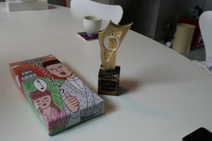 「ベスト回答賞」の立派なトロフィーが。