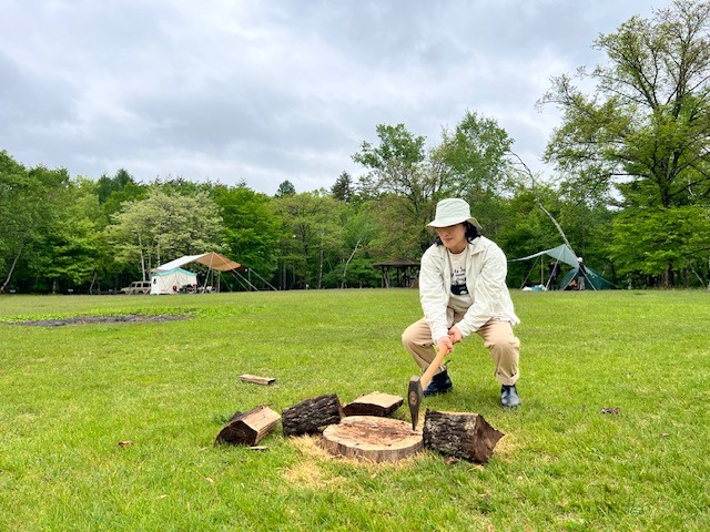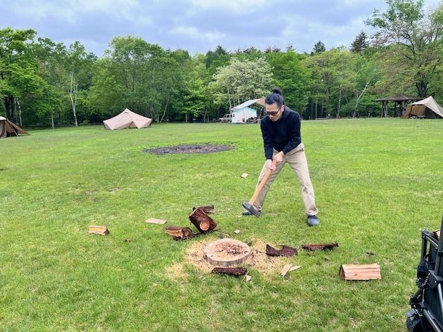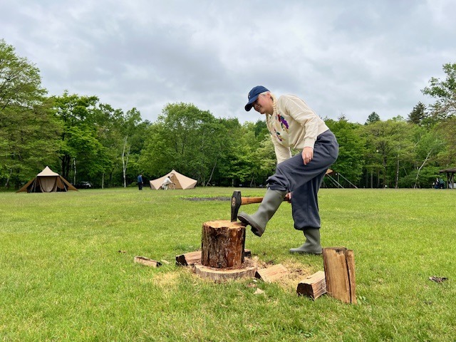 きみちゃんの薪割りを