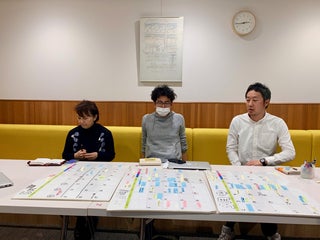 社内の仮の机を出して