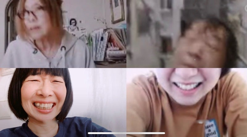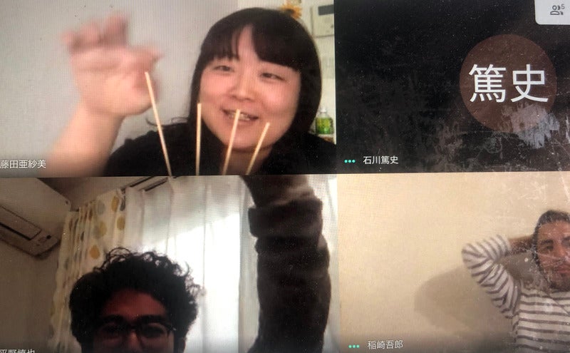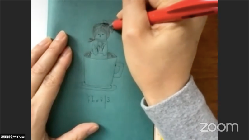 おちつけのカップであついほうじ茶を飲んでおちつき、