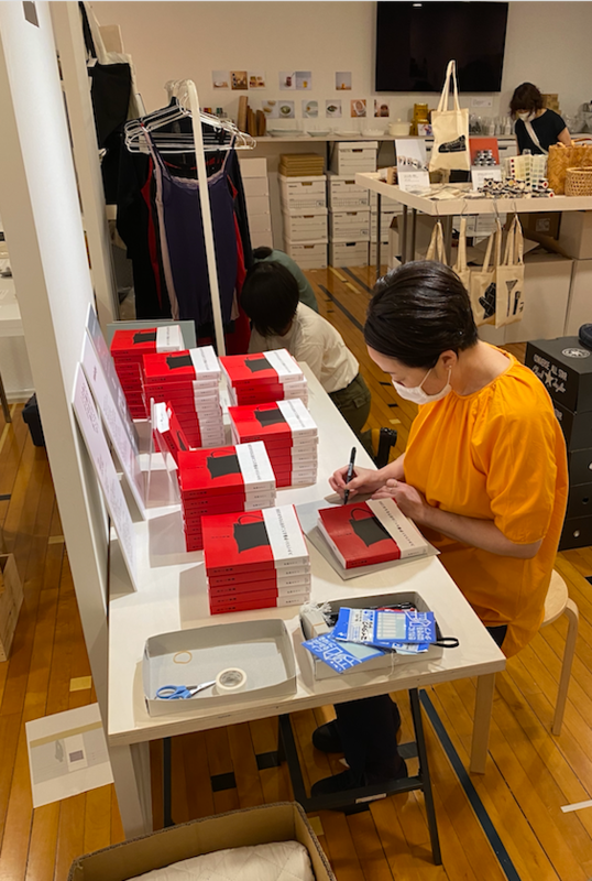 まさこさんもサイン本にサイン中。