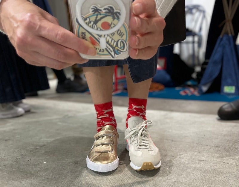 VEJAのスニーカーをためし履き。