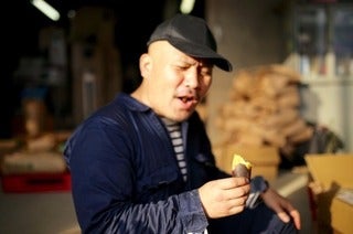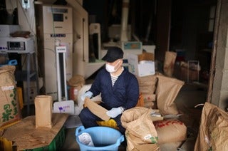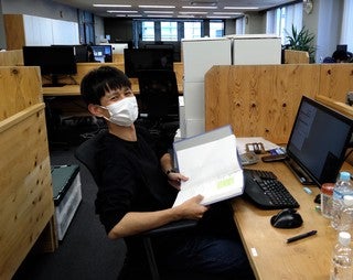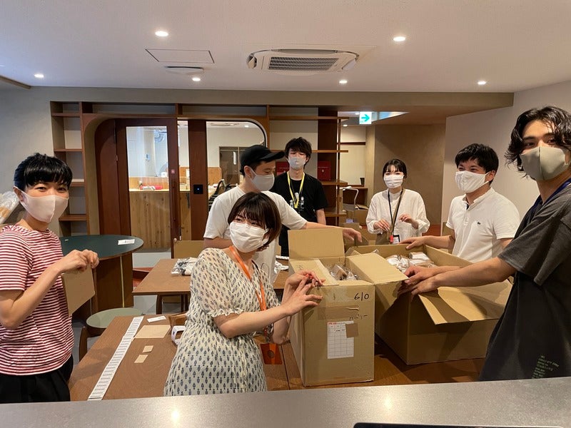 バーコード貼り貼り作業です。
