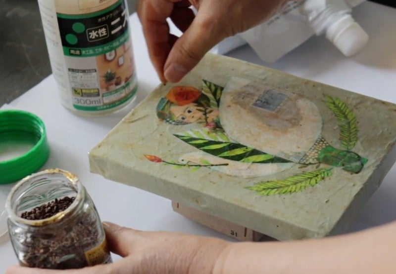 それを水性ニスでとかしながら