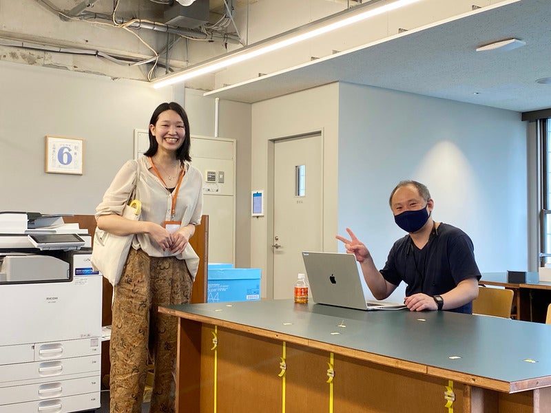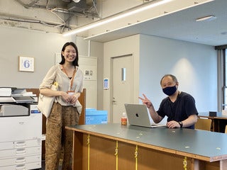 スタジオの大江さんのもとに