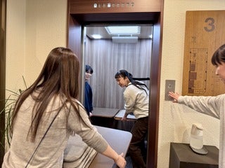 エレベーターに信じられない量の机を乗せて