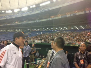 聞こえましたか??原監督が、ほぼ日シートにむかって!!「ウェルカム!」
