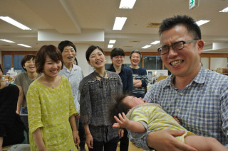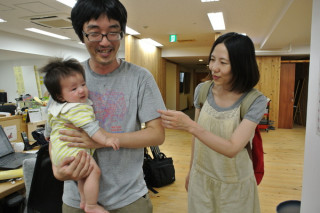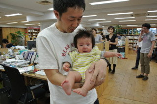 『吉本隆明 五十度の講演』そして『吉本隆明が語る親鸞』の編集作業をするために長い期間「ほぼ日」につめてくれていた編集者の深澤晃平さん(こうちゃん)が遊びにきてくれました。数年前まで独身を謳歌していたのに、こうちゃんはこのたび赤ちゃんを連れてきたので一同、驚きました。(2枚目の写真に写っているのが こうちゃんご一家です)なんだか、ふしぎです。永遠の青年のように思ってたこうちゃんが赤ちゃんに「はいはいはい〜」とか言ってる姿。じーんとしました。みんなも「こうちゃんがおとうさんになるなんて〜」と、感動の拍手をしていました。こうちゃん、また遊びにきてね。そしてまたいっしょに仕事しようね。今日、意見を求めましたがあいかわらず辛辣でよかったよ。