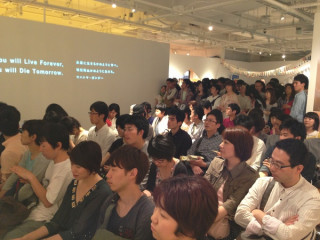 14時から1時間の予定で気仙沼の斉吉商店の和枝さん、陸前高田の八木澤商店の河野通洋さんと糸井重里のトークイイベントがはじまるところ。立ち見のお客さまをふくめてこ〜んなに、集まってくださいました!