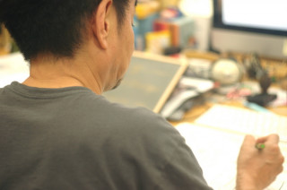 の机から シャシャシャという音がするので 近寄ってみると 「お絵描き中」でございました。