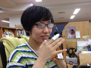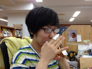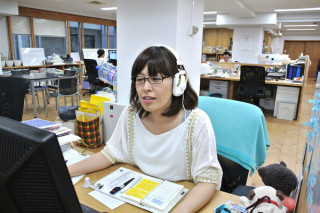 はしばしば 数字などのデータをあつかい 集中しなくてはいけないため、 ヘッドフォンを着用して仕事をしています。