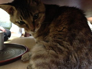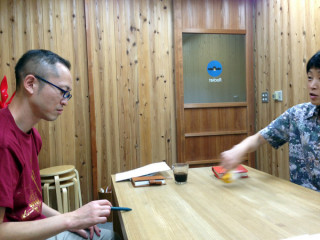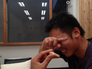 ぼくの右側にパソコンがあったので そっちを向いているあいだに、 左にあるドアから、だれかがすっと 入ってきて座りました。 ああ、 さんが、 ‥‥かと思って左を向いたら、 いたのは でした。