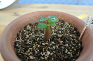 もちろんわたくしスガノの 砂漠のバラ「小南くん」も 順調に育っています。 水をやりすぎないように、毎日土をさわって 乾き具合を確認するようにしています。 |