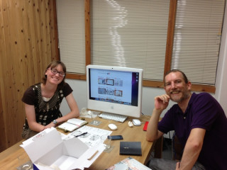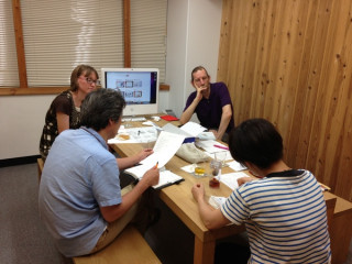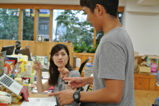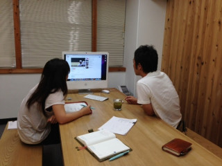 手帳にまつわる動きが 社内のあちこちですすんでいます。 こちらはリンジーとトムさん※を まじえてのミーティング。