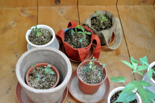 これまでは、ちいさな鉢に それぞれ5つくらいの芽が ひしめいていました。 この夏、1歳になった彼らには、 狭くなったような気がしていたのです。