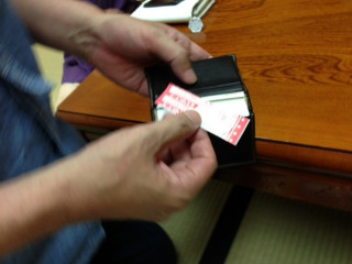 どういうこっちゃーーー! 緊急用に、名刺入れに入れてるんですね。 えらいね。 わたしは1,000円札を入れていることが あります。 緊急用として。 |