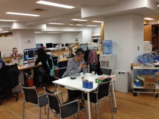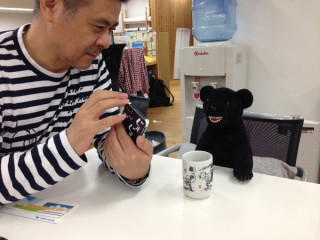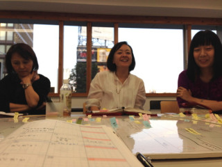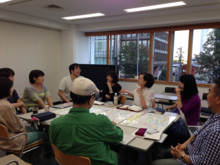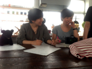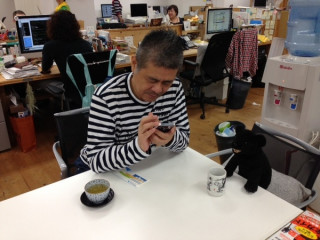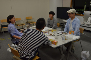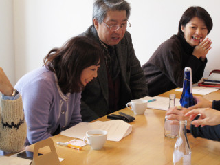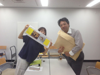 (写真は角星さんに初めてパッケージ案を お披露目したときの様子です。 (2012年12月))