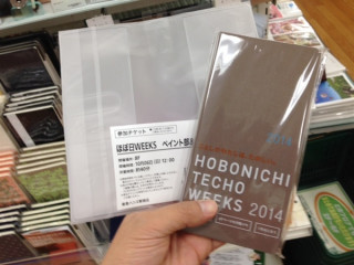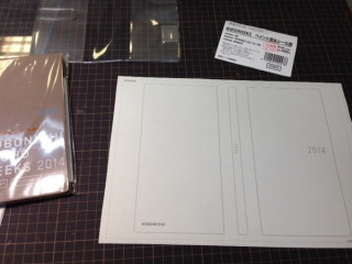 今日は、じつは、お客さんとしてやってきています。実際に来年のWEEKSをわりと本気でカスタマイズしてみようと思ってます!まずは、マンガメガネくんから参加チケットをもらって、手帳を選びます。ここでかなり悩みましたがカスタマイズしやすそうなモノカラーのデザートを選択。クリアカバーも買ったよ。