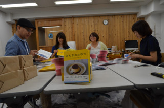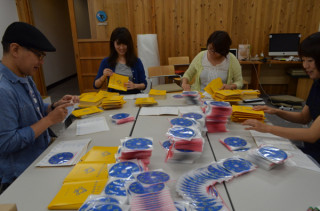 こちらは、 台紙とDVDが別々にできあがったので、 社内の会議室で ぺたぺた台紙にはりつけました。 その数、5000。
