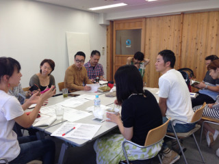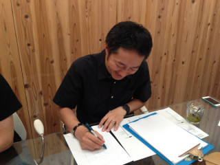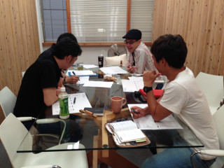 事務所の中央のテーブルで