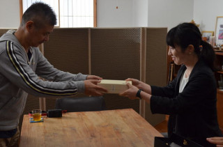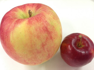 取引先の方より、贈りもので、 りんごをたくさんいただきました。 秋映、シナノゴールド、 シナノドルチェ、アルプス乙女など、 いろんな種類のりんごが入っていて みんな大感激。 なかよく分けて、いただきました。 箱をよく見ると、そこにひとつ ちいさなくだものが入っていました。