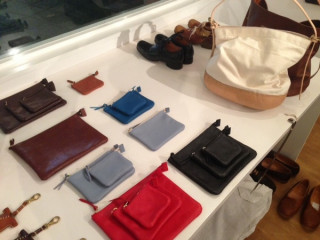 革のブーツやひも靴など、 いろんな形の靴がそろっています。 そして今回は靴だけでなく、 バッグやポーチなどの小物もありますよ。