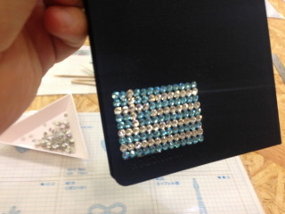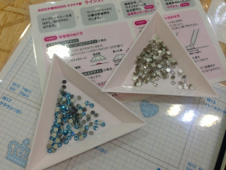 WEEKSをレジで買って キラキラ部長の の指導のもと ラインストーンを貼っていきます。 途中で に